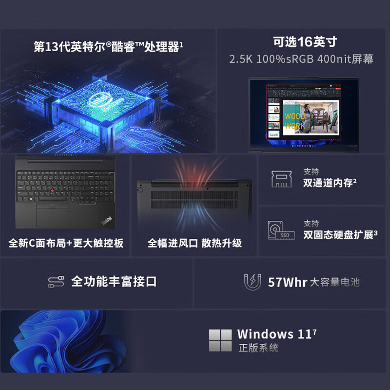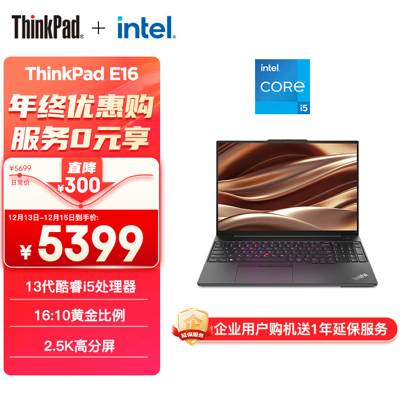 ThinkPad E16 2023款 酷睿i5 联想16英寸轻薄便携笔记本电脑(13代i5-1340P 16G 512G 2.5K 100%sRGB)商务办公学生本价格:5399.00元!
