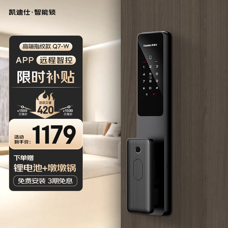 凯迪仕(kaadas)指纹锁智能门锁 密码锁防盗门锁智能锁 Q7-W价格:1199.00元!