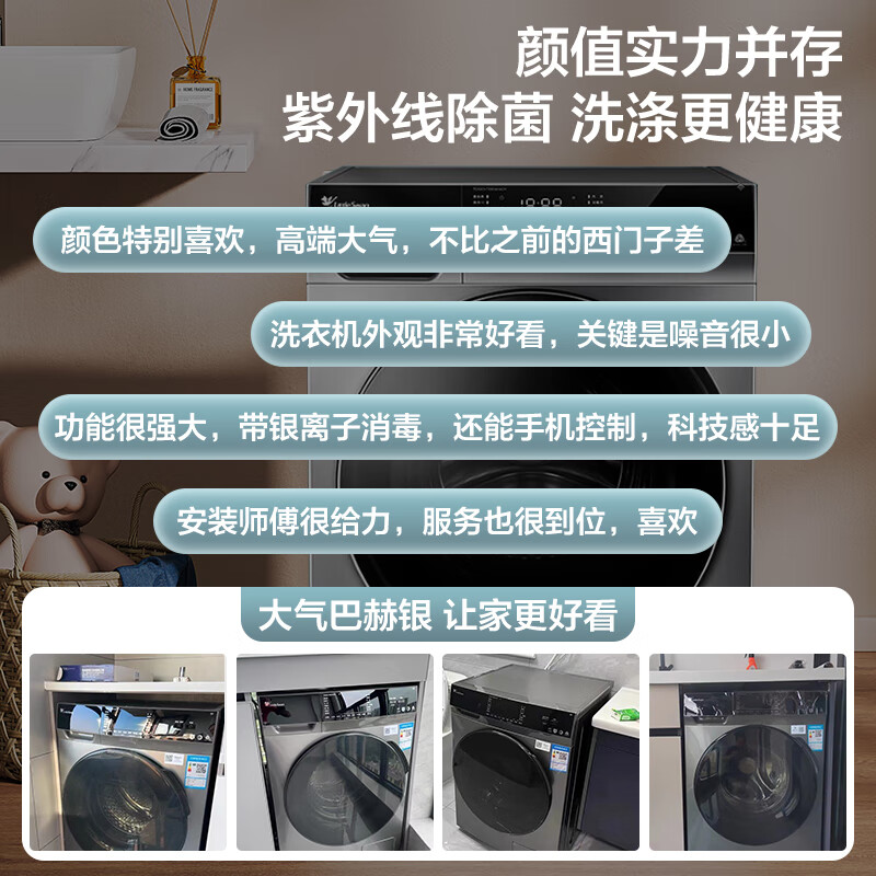 3、小天鹅洗衣机和烘干机,购买套餐很合适,机器美观,容易搭配装修风格,机器安装调试后,很静音,衣服洗的干净。物流很快,师傅送货态度好。