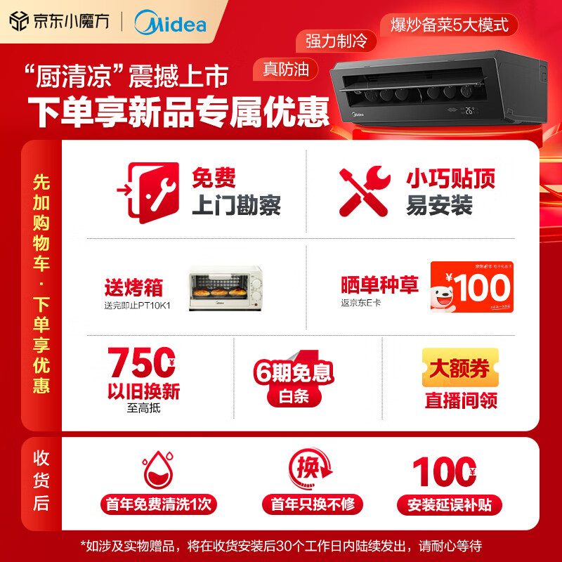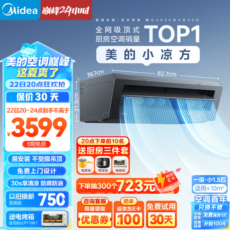 美的(Midea)厨清凉 防油烟 厨房空调 专用吸顶式 变频空调 大冷量 CKF-30XW/BN8Y-XD300 曜石黑价格:3599.00元!