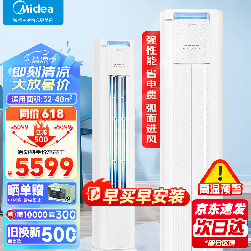 美的空调 3匹 酷省电 新一级能效 变频冷暖 空调立式 客厅空调柜机 云朵系列 KFR-72LW/N8KS1-1P价格:5599.00元!