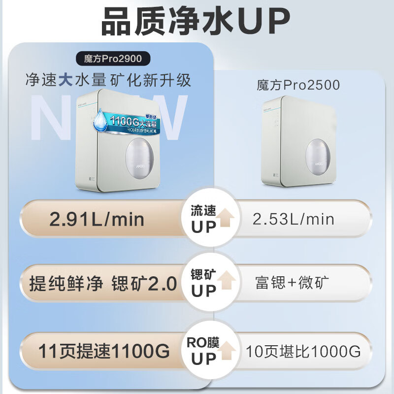 安吉尔魔方Pro 1100G流速体验三件套 净水器pro2900+前置过滤器3526+加热管线机3511价格:4576.00元!