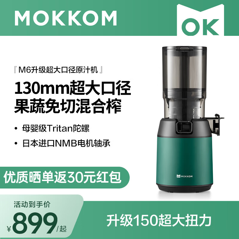 mokkom磨客原汁机榨汁机渣汁分离大口径家用可商用多功能果汁机小型榨汁杯养生壶豆浆破壁料理机M6墨绿色价格:869.00元!
