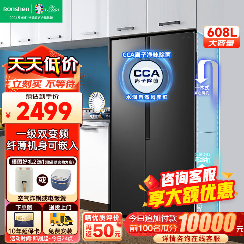 容声(Ronshen)608L对开门纤薄可嵌入式大容量双开门净味二门风冷无霜一级超薄冰箱BCD-608WD18HP价格:2999.00元!