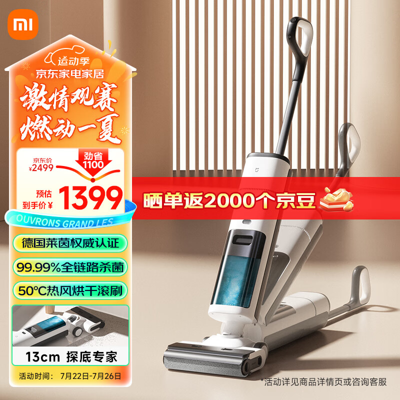 米家小米无线洗地机2 家用洗地机吸尘扫地拖地机 智能吸拖一体 电解水杀菌 躺平双贴边清洁 热风烘干价格:1399.00元!