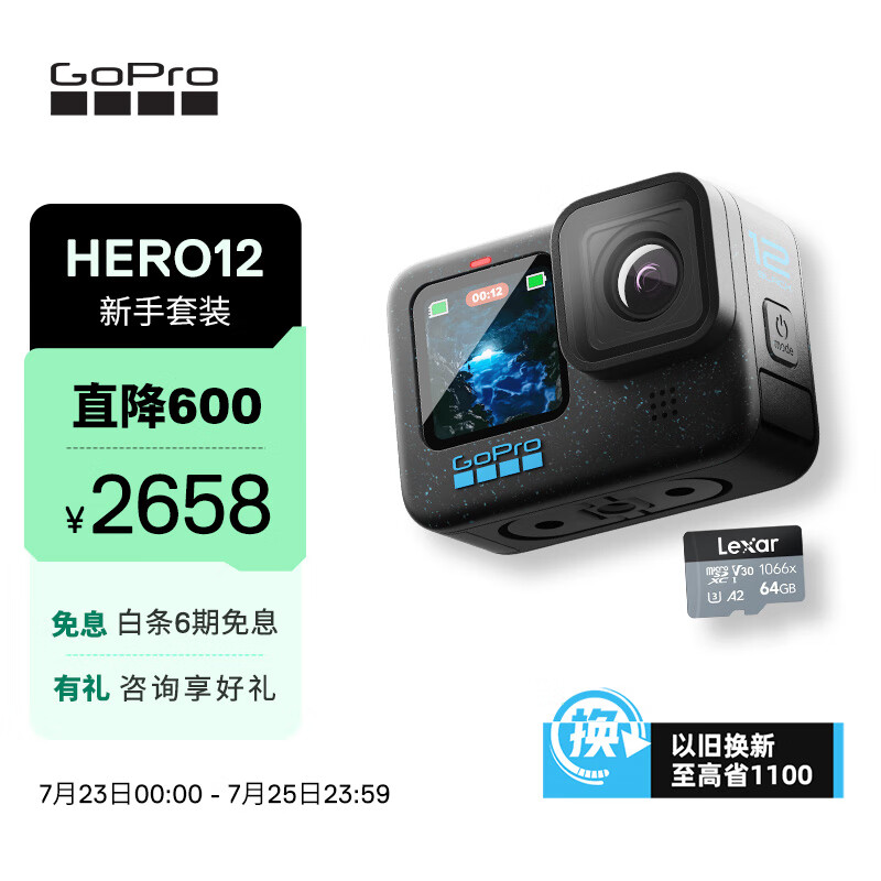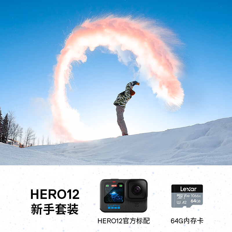 GoPro HERO12 Black运动相机 防水数码相机 vlog防抖 户外潜水骑行相机 新手套装【单机+64G内存卡】价格:2658.00元!