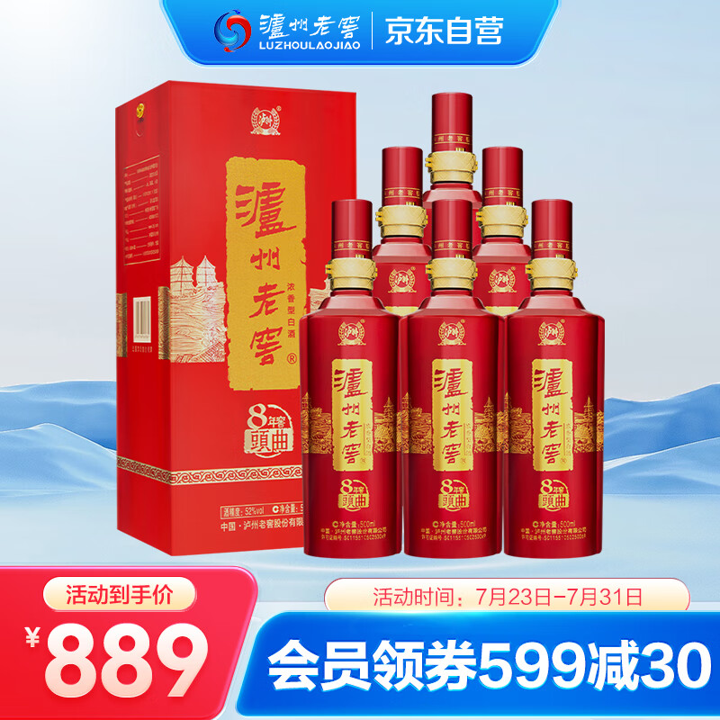 泸州老窖 八年窖头曲 典藏流金 浓香型白酒 52度500ml*6瓶整箱装价格:889.00元!
