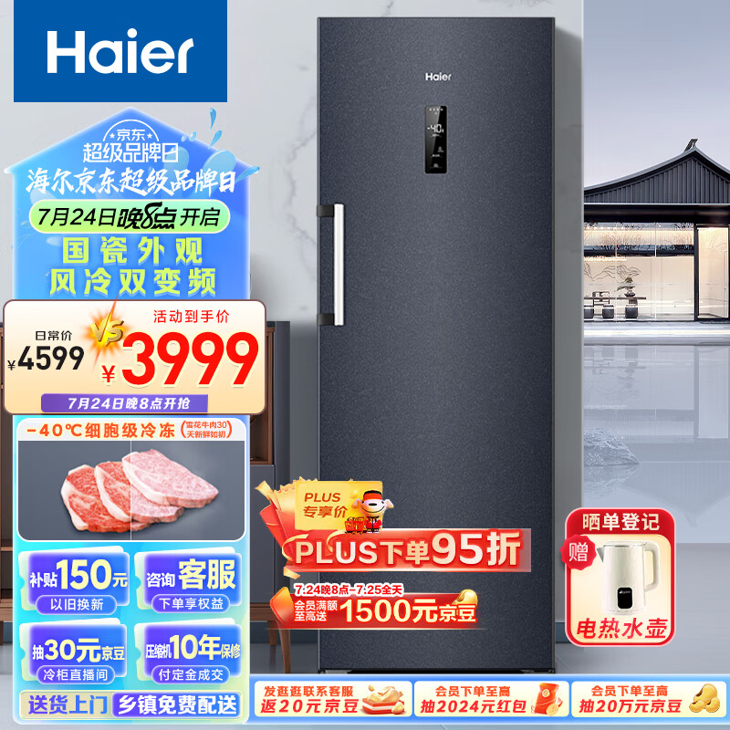 海尔(Haier) 226升 -40℃风冷变频家用立式冰柜冷藏冷冻柜抽屉式冷柜小冰柜家用小型冰箱BD-226WGHEC以旧换新价格:3999.00元!
