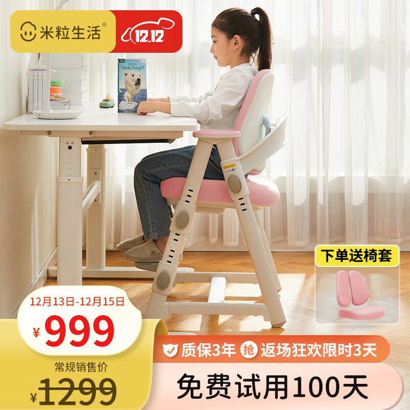米粒生活儿童学习椅子可升降小学生写字椅家用书房座椅端正坐姿132F粉价格:1299.00元!