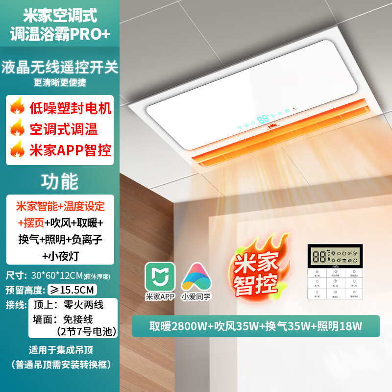此款雷士EWBB1568I/60BLHF-M很喜欢这个外观,质量挺好的,智能待机不错,天色暗的时候,进卫生间自动亮灯。面积小弱暖就够用,省电。排风扇2个动力强,外观简洁大气。干燥功能避免潮湿。