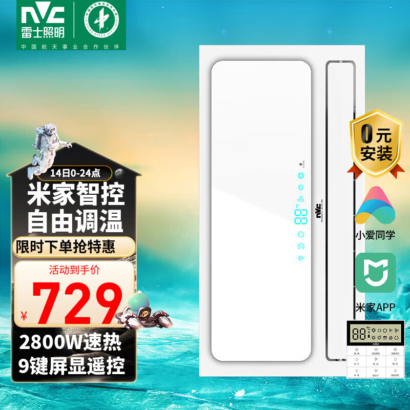 雷士(NVC)米家智能摆风调温风暖浴霸排气照明一体浴室暖风机卫生间取暖器价格:729.00元!