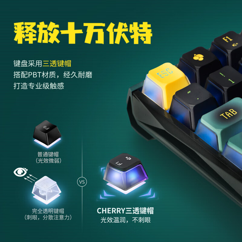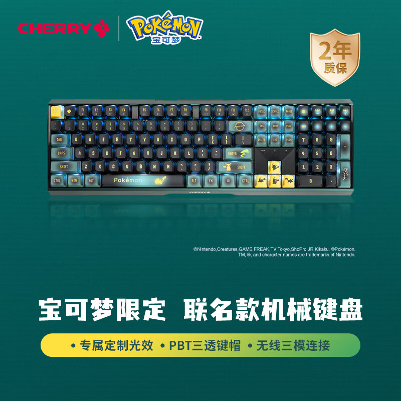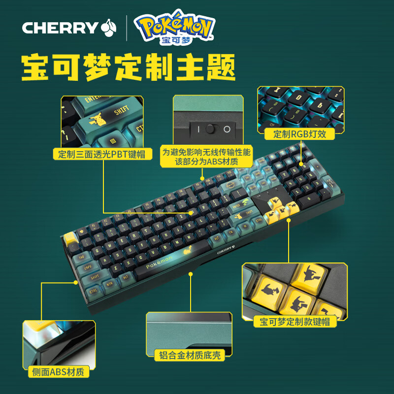 CHERRY樱桃 MX3.0S无线键盘 机械键盘 宝可梦联名款 皮卡丘键盘 三透PBT键帽 蓝牙有线三模 办公游戏键盘价格:1099.00元!
