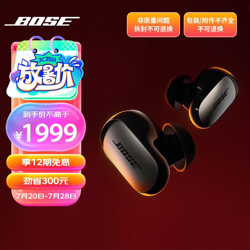 Bose QuietComfort 消噪耳塞Ultra-经典黑 真无线蓝牙降噪耳机大鲨3代 智能耳内音场调校 骁龙畅听技术价格:2099.00元!