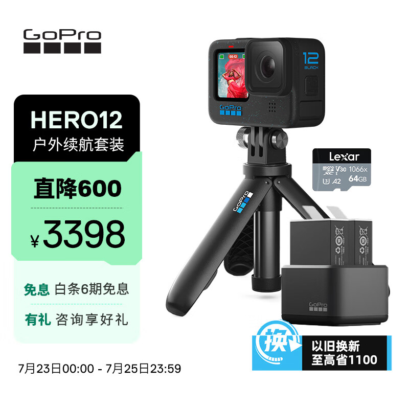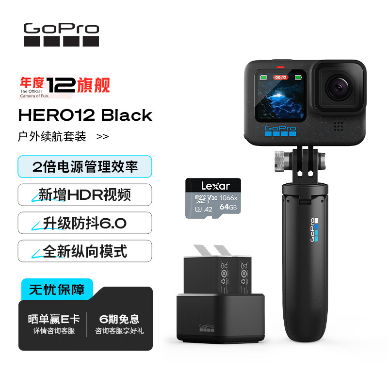 GoPro HERO12 Black运动相机 潜水防抖 vlog数码防水相机 户外续航套餐【shorty+增强双充+64G内存卡】价格:3398.00元!