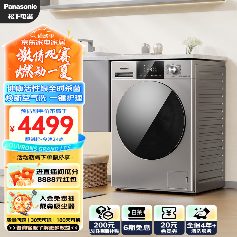 松下(Panasonic)滚筒洗衣机全自动 超薄全嵌 10公斤 洗烘一体 智能投放 活性银除菌 温水泡沫净XQG100-811DM价格:4499.00元!