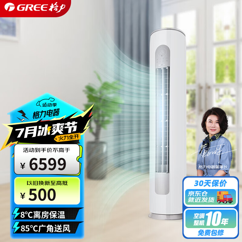 格力(GREE)3匹 京秀 三级能效 变频冷暖 宽幅送风 立柜式空调柜机 KFR-72LW/(72587)FNhAb-B3价格:6599.00元!