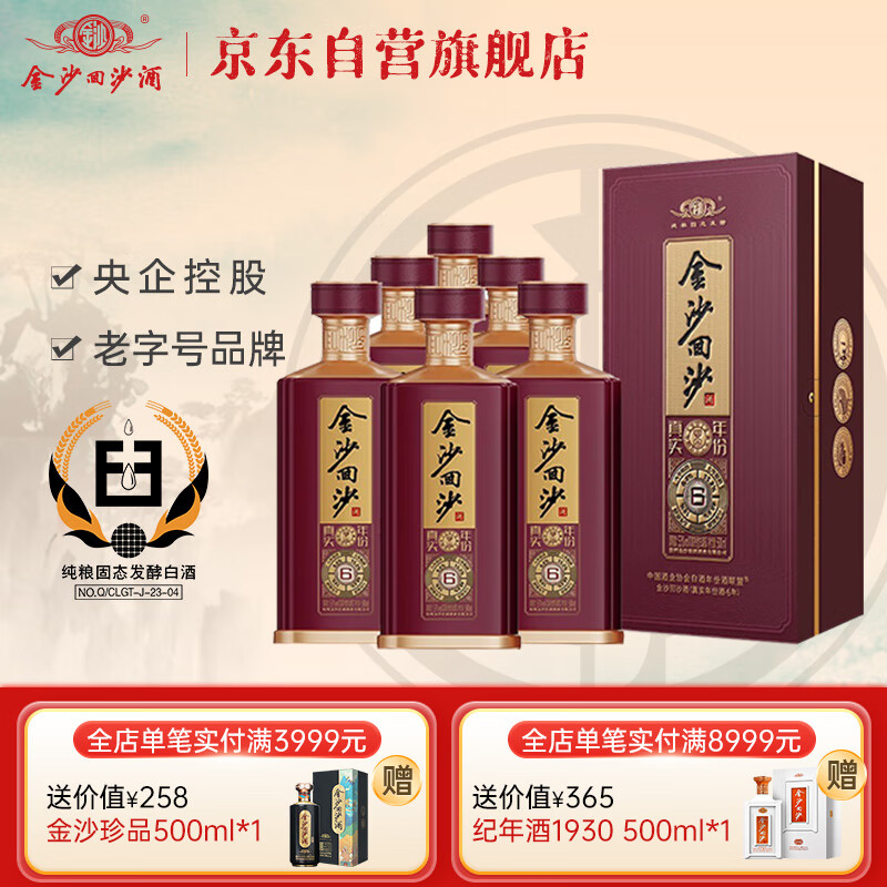 金沙金沙回沙酒 真实年份酒(6年)礼盒装 53度 500ml*6 整箱装 价格参考: