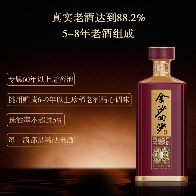 金沙金沙回沙酒 真实年份酒(6年)礼盒装 53度 500ml*6 整箱装 配置参数:
