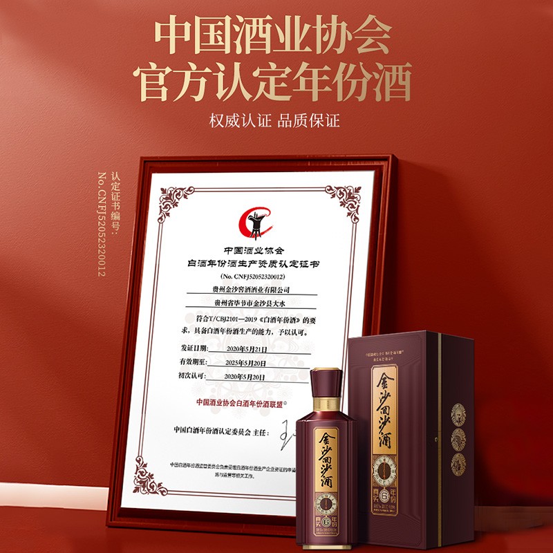 商品名称:金沙金沙回沙酒真实年份酒(6年)礼盒装53度500ml*6整箱装