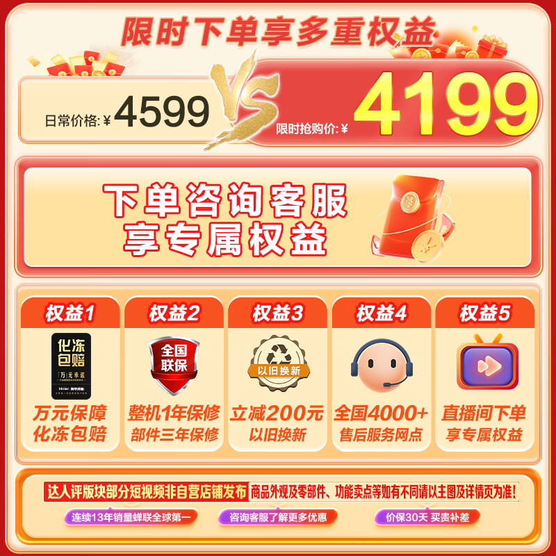 海尔(Haier)718升卧式商用家用冰柜 商用大容量冷藏柜大冷冻柜冰柜家用冰箱大冷柜BC/BD-718GHPD以旧换新价格:4199.00元!