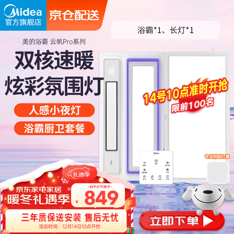 美的(Midea)风暖浴霸双核排气扇照明一体卫生间取暖器集成吊顶智能浴室暖风机价格:899.00元!