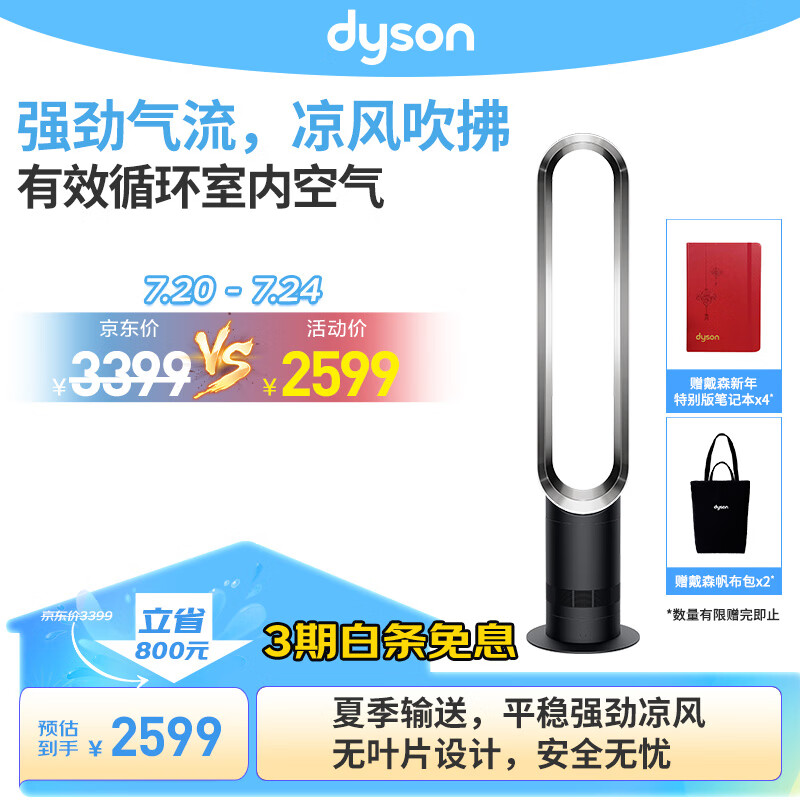 戴森(DYSON)AM07 无叶电风扇 落地扇 强劲稳定气流 进口空气循环扇 黑镍色价格:3399.00元!