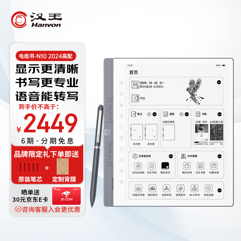 汉王(Hanvon)N10 2024手写电纸本10.3英寸电子书阅读器墨水屏电纸书电子笔记本智能办公本 高配价格:2449.00元!