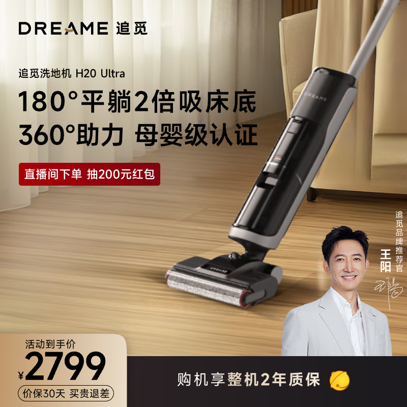 追觅家用无线热水洗地机H20u 60°高温热水洗地机速 5分钟速干价格:2499.00元!