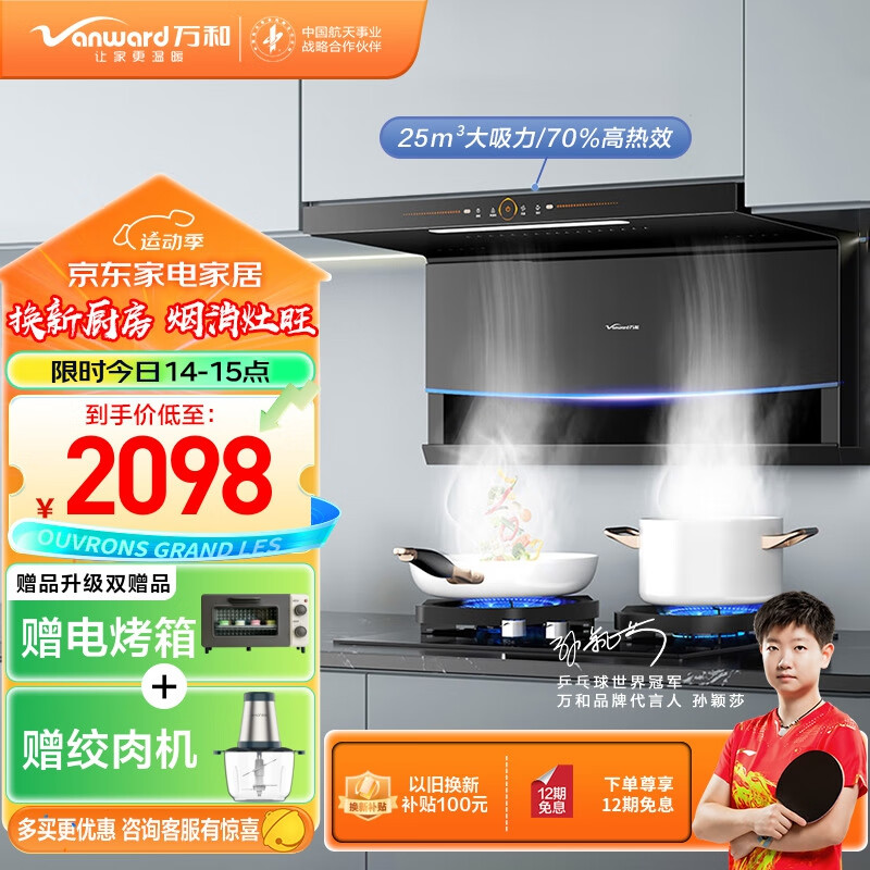 万和(Vanward)顶侧双吸7字型家用抽油烟机 70%高热效燃气灶具烟灶套装 25m3/min大吸力WL856+G6L50(天然气)价格:1998.00元!