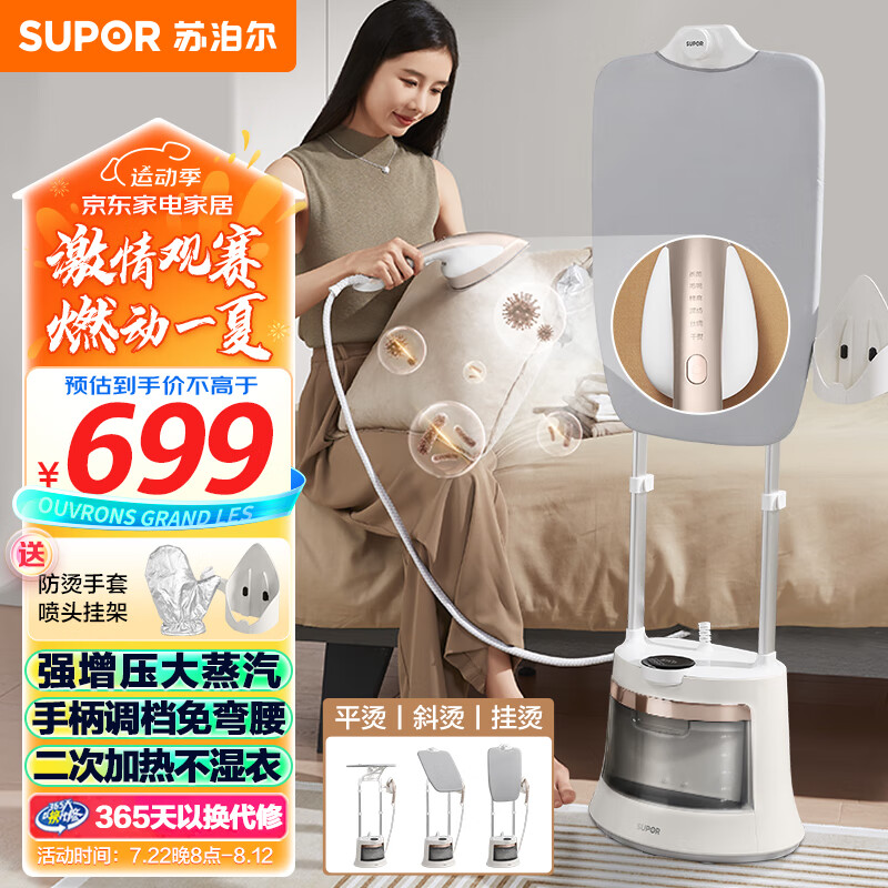 苏泊尔(SUPOR)【手柄调节免弯腰】挂烫机家用双杆大功率手持熨烫机杀菌烫衣服电熨斗蒸汽挂烫机Y207A价格:699.00元!