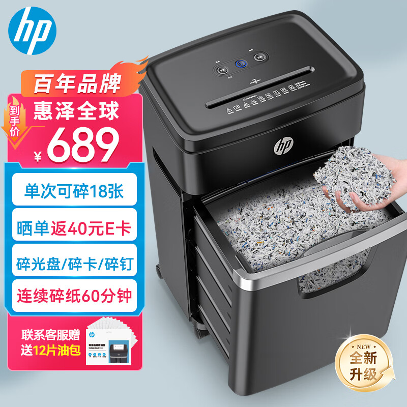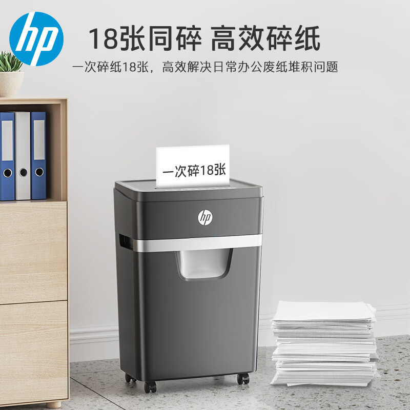 HP惠普大吞吐高保密商务办公碎纸机大型粉碎机(单次18张 持续碎60min碎卡、光盘)W2518CC价格:789.00元!