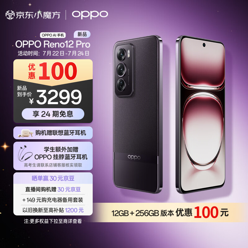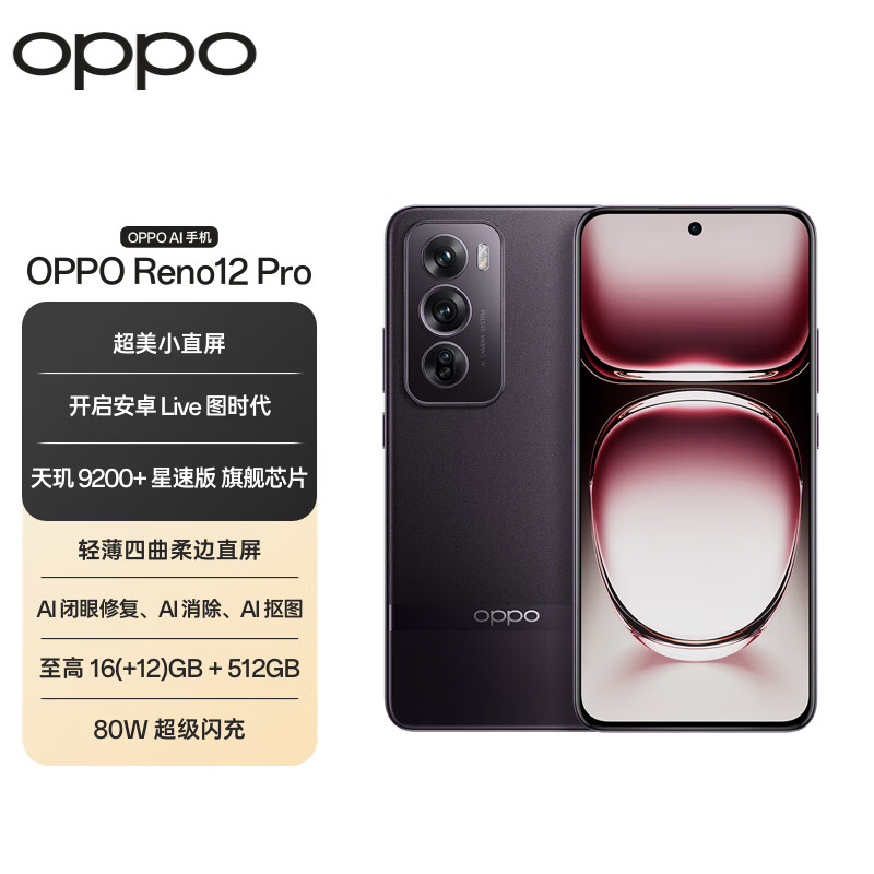 OPPO Reno12 Pro 超美小直屏 安卓Live图 天玑旗舰芯 12GB+256GB 乌木黑 新款智能游戏 AI拍照 5G手机价格:3399.00元!