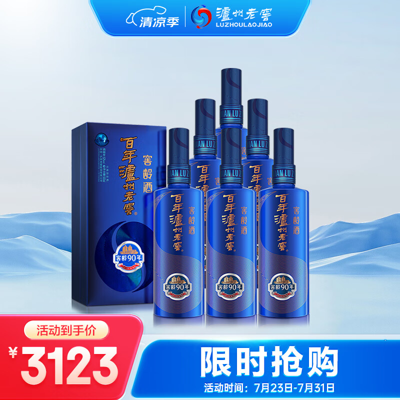 泸州老窖 窖龄90年 浓香型白酒 52度500ml 6瓶 整箱装(内含礼品袋)价格:3123.00元!
