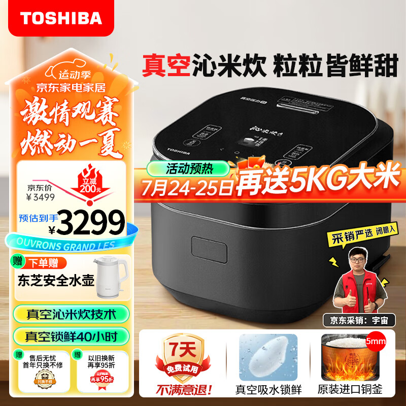 东芝(TOSHIBA)真空沁米炊鲜饭煲真空吸水 锁鲜40H多段IH立体加热5mm锻造铜釜智能预约3L家用电饭煲RC-10ZWSC价格:3499.00元!