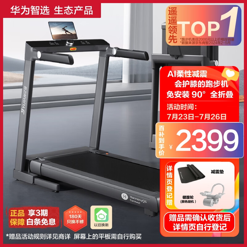 华为智选跑步机家用降噪全折叠减震智能走步机亿健精灵S8 免安装 宽大跑台价格:2499.00元!