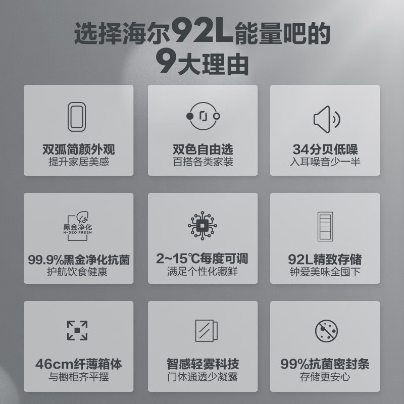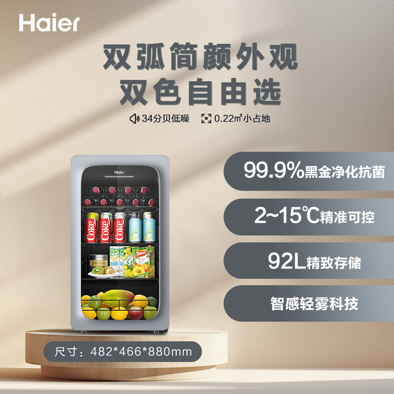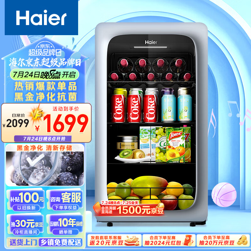 海尔(Haier)92升家用客厅办公室冷藏柜暖藏冰吧茶叶饮料水果蔬菜保鲜柜小型冰箱冰河银LC-92LH9ES1以旧换新价格:1699.00元!