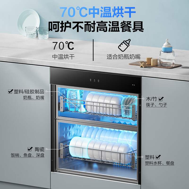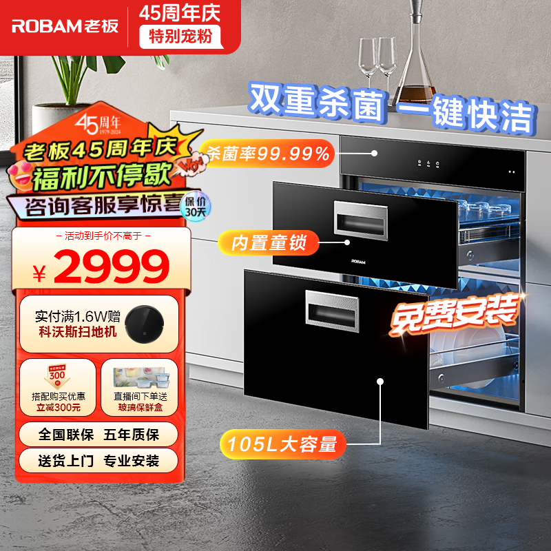 老板(Robam)消毒柜家用 嵌入式消毒碗柜 105L大容量动态循环烘干餐具碗筷消毒柜二紫外线杀菌XB709A价格:2999.00元!