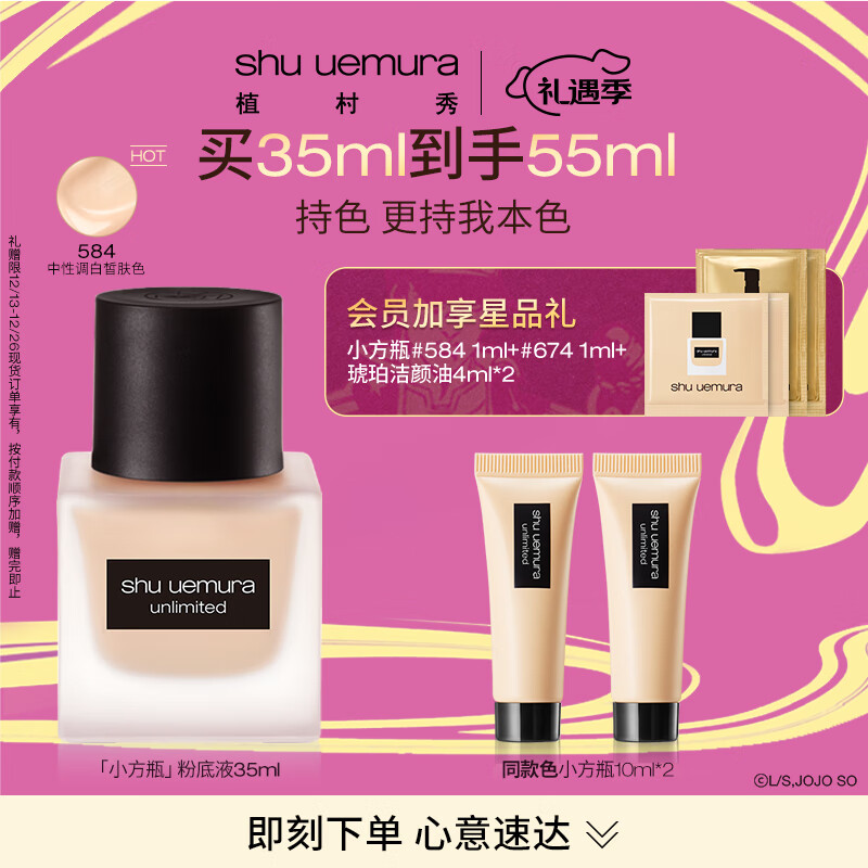 植村秀粉底液羽纱持妆小方瓶584 35ml 持色不暗沉 礼物送女生 送女友价格:490.00元!