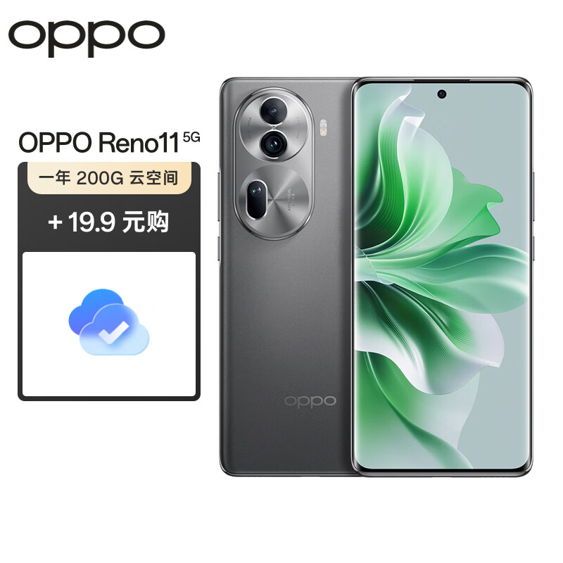 OPPO Reno11 单反级人像 天玑8200 长续航 12GB+256GB 曜石黑 5G拍照 AI手机【一年200G云服务套装】价格:2318.90元!