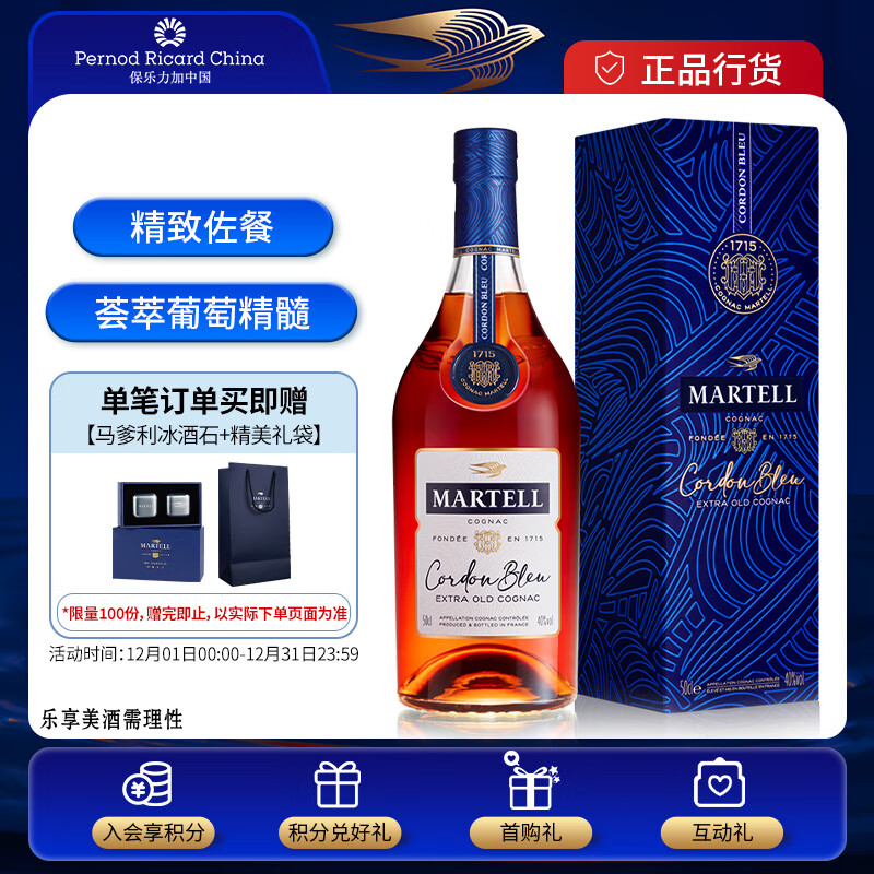 马爹利(Martell) 蓝带XO级 干邑白兰地 洋酒 500ml价格:1002.00元!