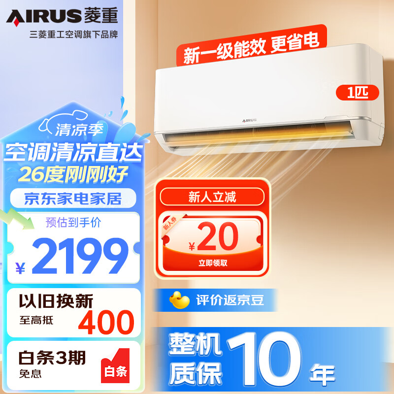 三菱重工空调 菱重空调大1匹空调 新1级能效 省电变频家用宿舍卧室壁挂式空调冷暖挂机臻选价格:2199.00元!