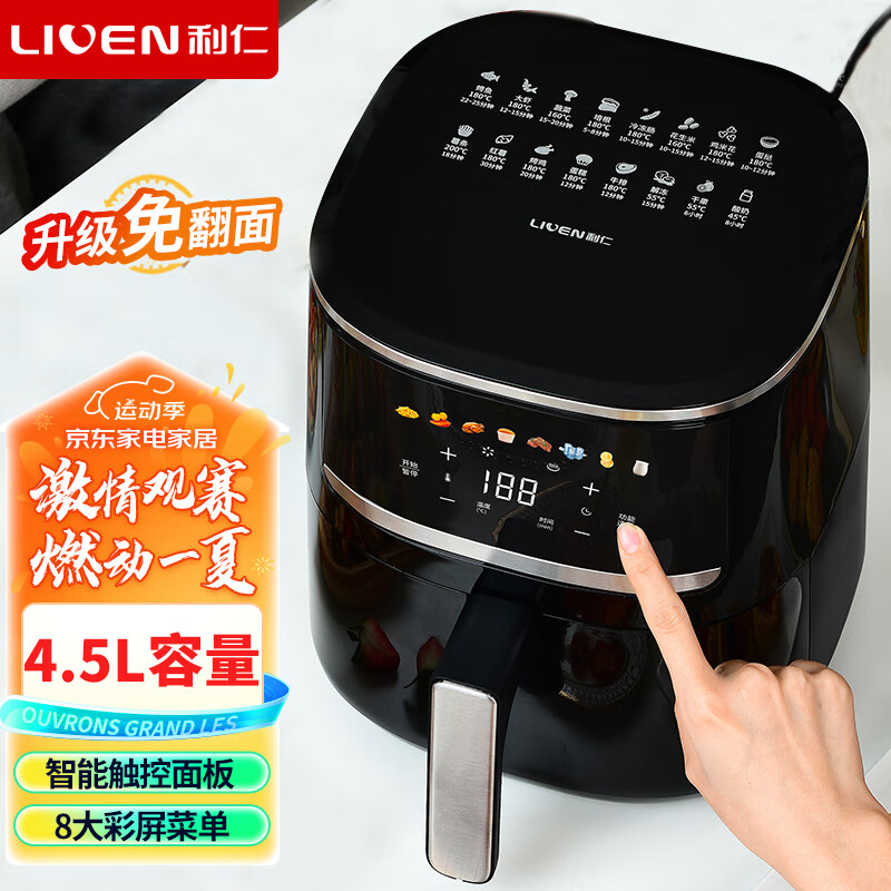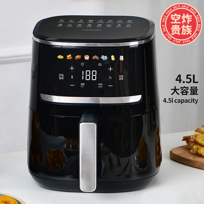 利仁(Liven)空气炸锅家用4.5升大容量智能无油电炸锅蒸汽炸锅 多功能空气炸锅烤箱全自动薯条机KZ-D4516价格:219.00元!