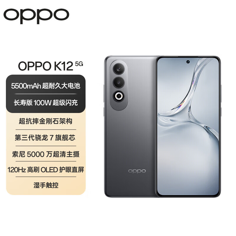 OPPO K12 5G 100W闪充 5500mAh超长续航 第三代骁龙7旗舰芯 直屏新款拍照游戏 AI手机 12GB+512GB 星夜价格:2199.00元!
