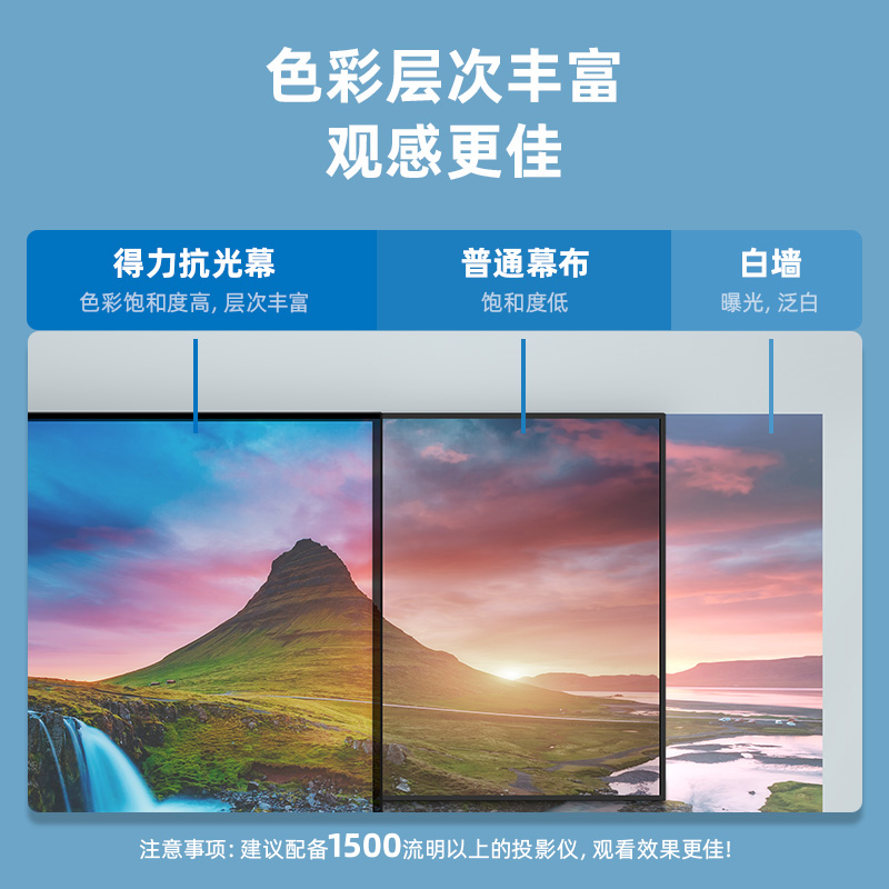 5、用着很不错,看着清晰,用当贝的投影仪,比投白墙强太多了,真是性价比很高的产品。我买的72寸的,刚好可以放入电视柜内,自己在墙上开了两孔挂上去正是不错的选择