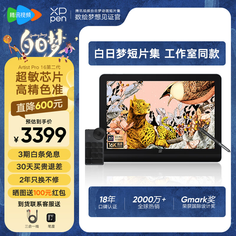 XPPen Artist Pro 16(2.5K)第二代数位屏 16K超敏压感 手绘屏 手写屏 数位板 手绘板 专业色彩插画建模价格:3919.00元!