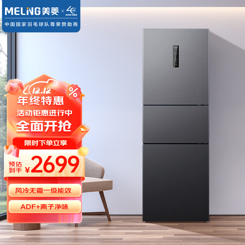 美菱(MeiLing)【离子净系列】269升三门冰箱风冷无霜一级变频净味保鲜BCD-269WP3CX【专】价格:2699.00元!