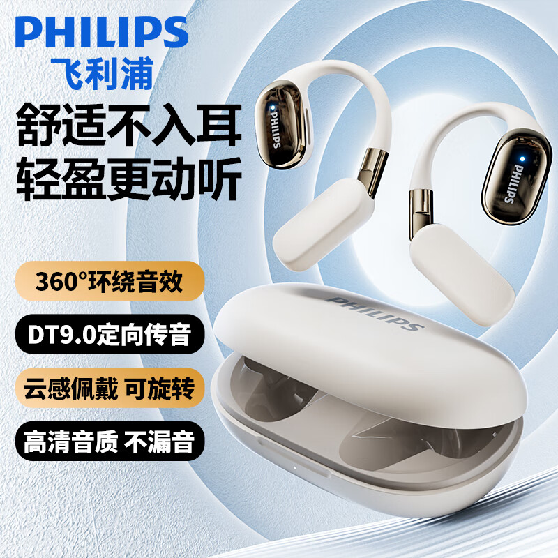 飞利浦(PHILIPS)蓝牙耳机骨传导概念真无线挂耳式开放式不入耳夹式运动跑步长续航高端降噪通用苹果华为TAT5739-白价格:799.00元!