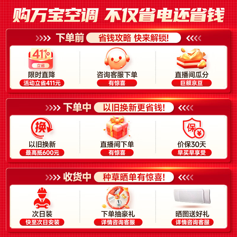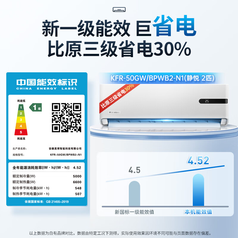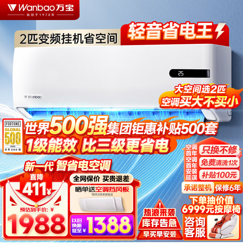万宝空调2匹新一级变频冷暖低噪音 巨省电 30s速冷自清洁大风量壁挂式 卧室客厅挂机KFR-50GW/BPWB2-N1价格:1988.00元!