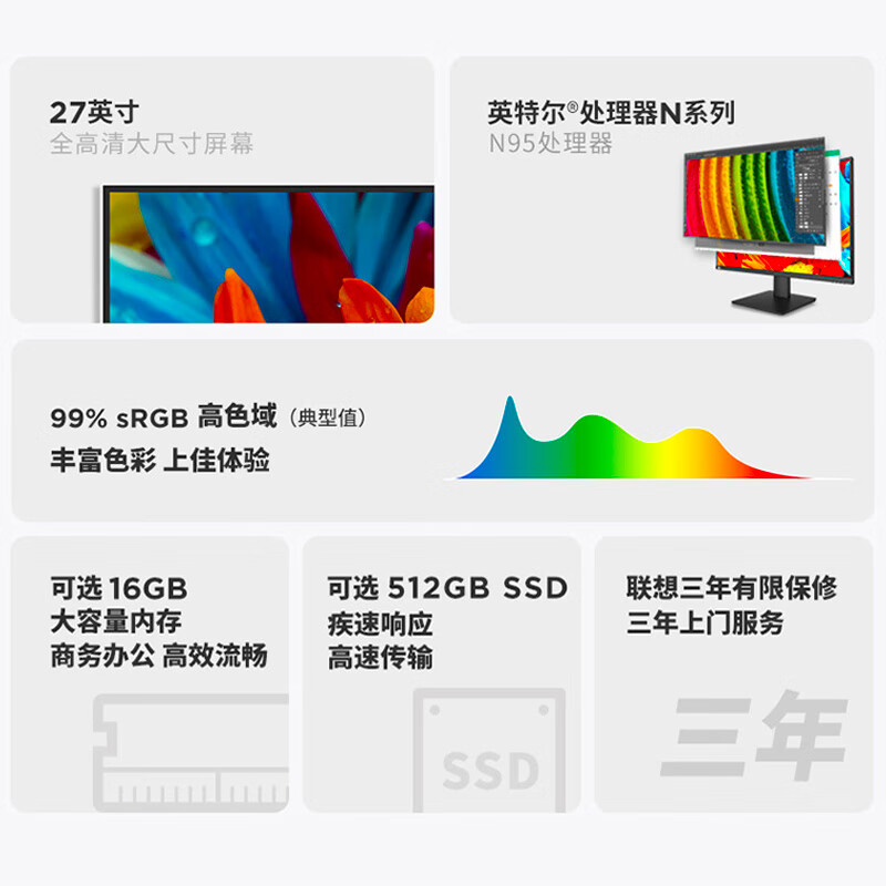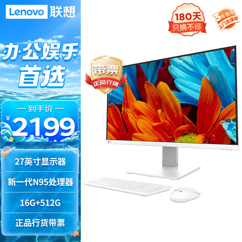 来酷Lecoo联想一体台式机电脑27英寸(英特尔N95 16G 512G SSD 无线键鼠)白价格:2177.00元!