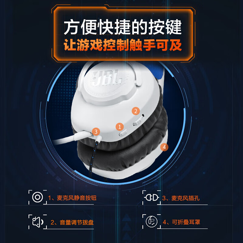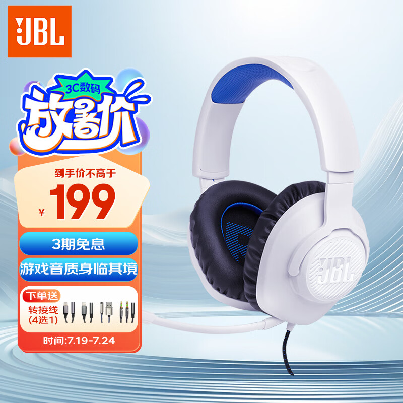 JBL量子风暴Q100 游戏耳机 有线电竞耳机头戴式 7.1环绕声电脑耳机3.5mm带麦克风监听耳麦 皓月白价格:299.00元!